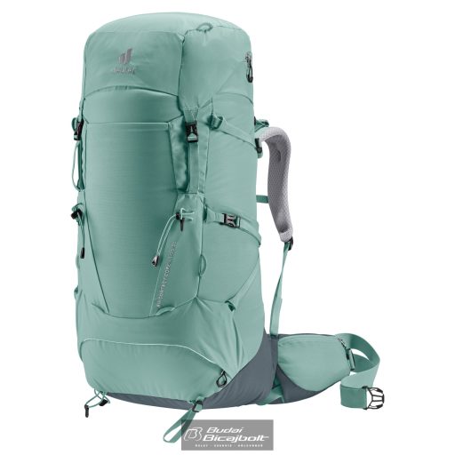 Kiemelkedő hordozási kényelmét a deuter Aircontact hátrendszer adja, amely Air Spacer hálóval és nagy szellőzőcsatornával, valamint ergonomikus ActiveFit vállpántokkal és állítható szegycsontpánttal rendelkezik. Az Y alakú keret, a mozgatható csípőuszonyok és az ergonomikus deréktámla kombinációja hatékonyan osztja el a terhelést. Az elülső teljes hosszúságú, J alakú cipzár megkönnyíti a tartalom megtalálását lent a fő rekeszben. Míg a nagy, levehető csípőúszózsebek (3 L) extra tárolást biztosítanak, és a tárgyakat elérhető közelségben tartják. A cipzáras, 1,5 literes palacktartónak köszönhetően menet közben is hidratálhatsz.